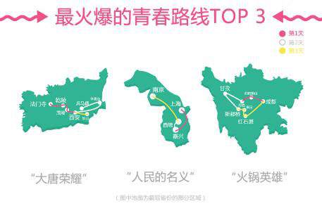 3天假時間較短,300公里內(nèi)的城市周邊游成為五一小長假的首選。年輕人在選擇中長線旅游路線時,更注重自己的參與感,容易受到熱門電影、電視劇中相關(guān)場景的影響,像《大唐榮耀》《人民的名義》《火鍋英雄》等熱播劇的取景場地,吸引了不少年輕人前往。西安-華山、南京-西塘、成都-甘孜等省內(nèi)自駕游路線成為火爆的青春路線。據(jù)分析,這可能與西安、南京、成都三個城市均為大學(xué)城,大學(xué)生人數(shù)眾多有關(guān)。