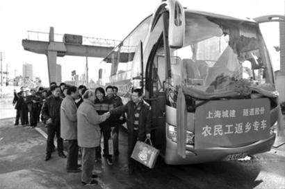 上海隧道股份盾構工程分公司黨總支書記胡剛介紹,為了這次大巴包車送農民工回家過年,工地耗費近萬元用于大巴包車準備,以及大禮包的籌措。為了確保安全,除了大巴租車公司配備的兩名駕駛員外,工地上還專門派安全員一路護送。